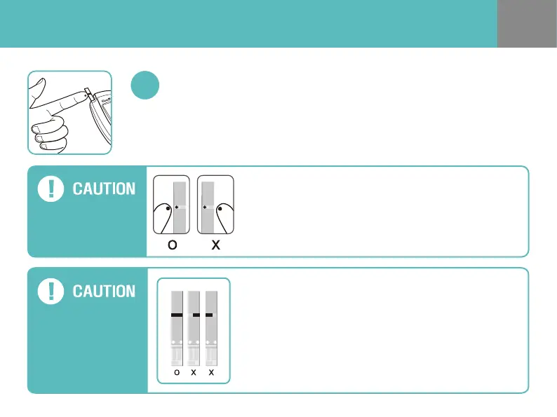 Touch and hold the blood drop to the side edge of the yellow window of test