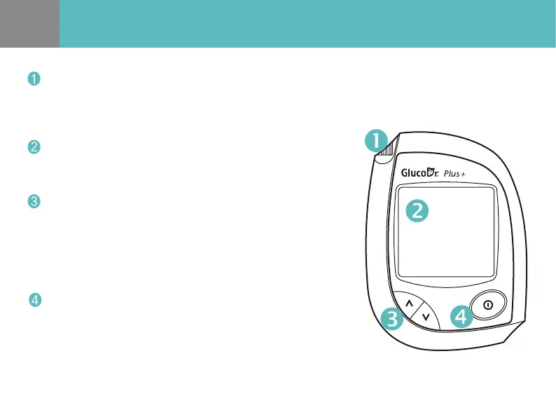 - Insert the GlucoDr Plus Test Strip for testing. Then the meter