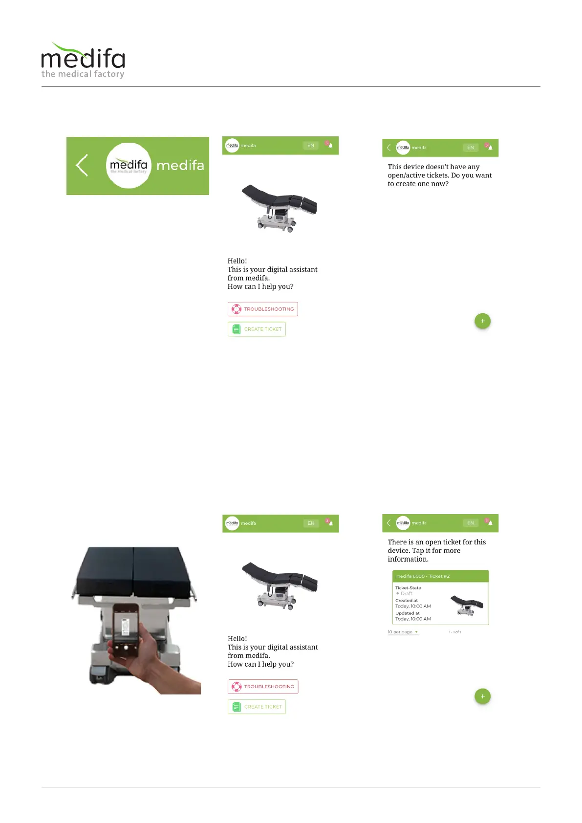 If you cannot resolve the problem on your own, you can send a service request directly to medifa.
