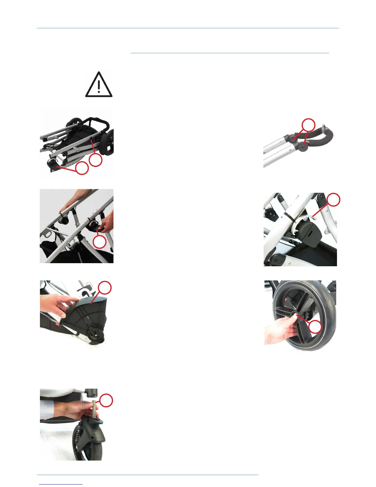 Press the locking pin (G) in and slide the front wheels into the front frame.