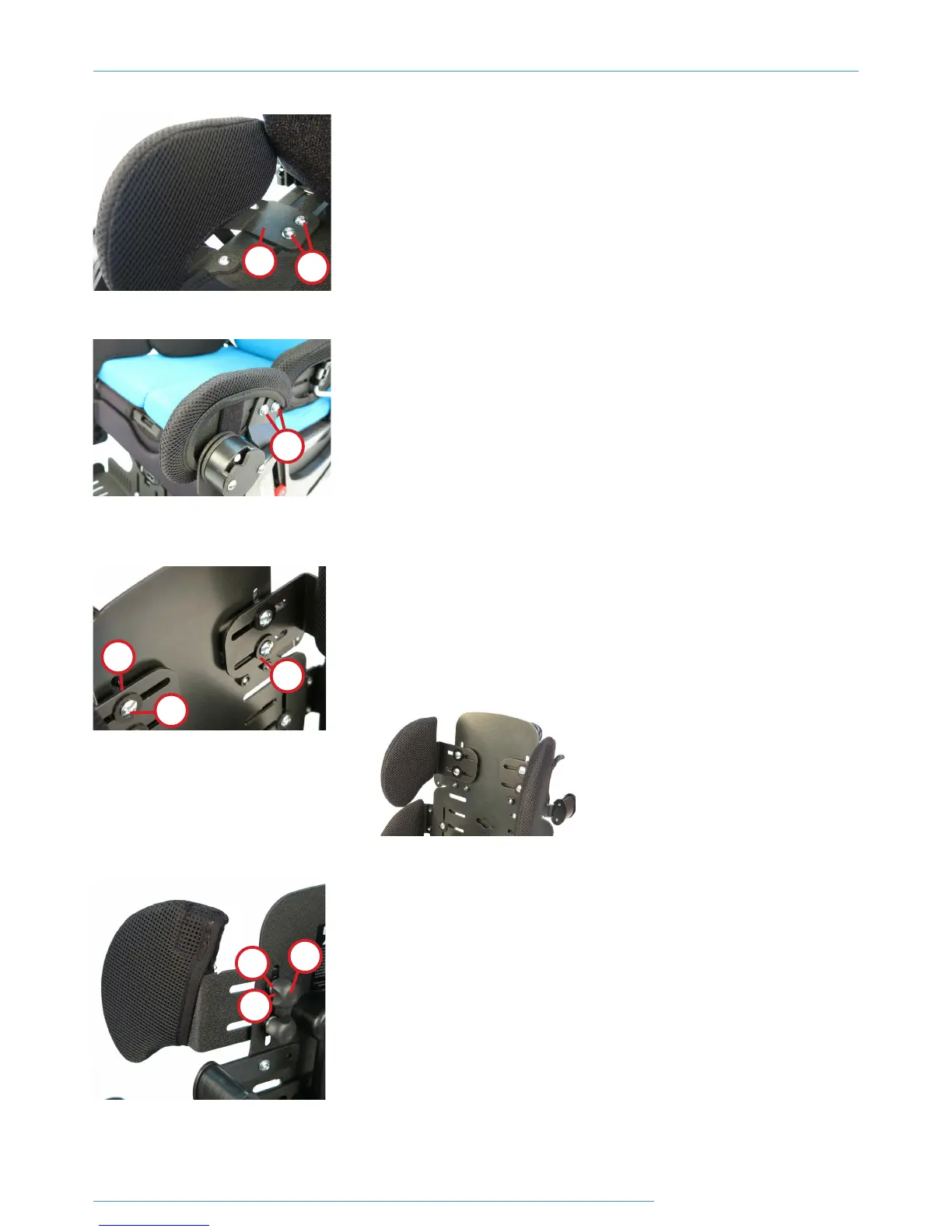 through the slots. The thick washers (E) are to be assembled between the headrests