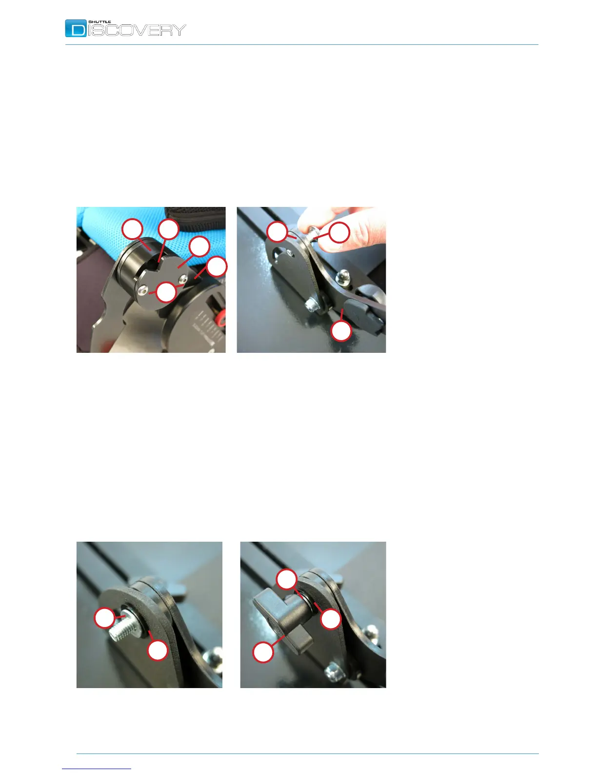 Secure the mounting block (A) and the height stop plate (D) to the footrest hinge