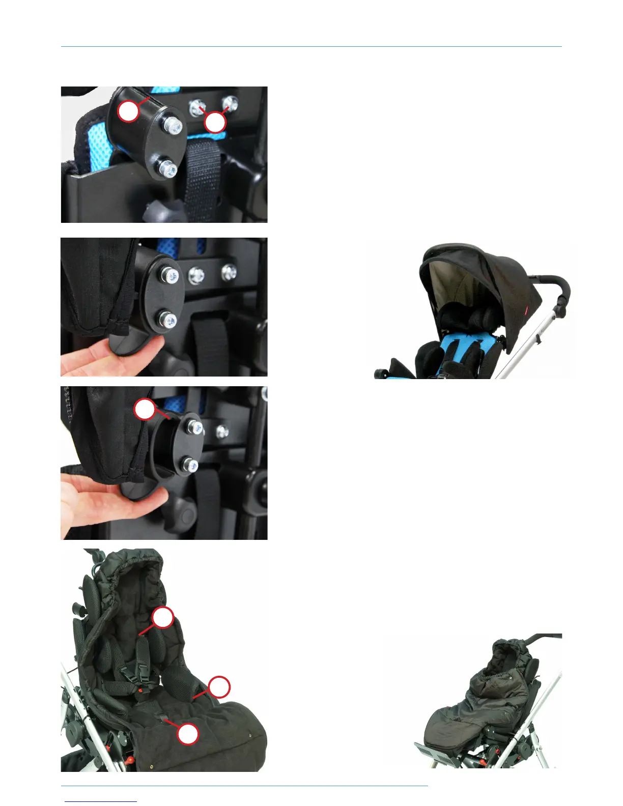 Fit the two Sunhood brackets to the backrest shell using the four