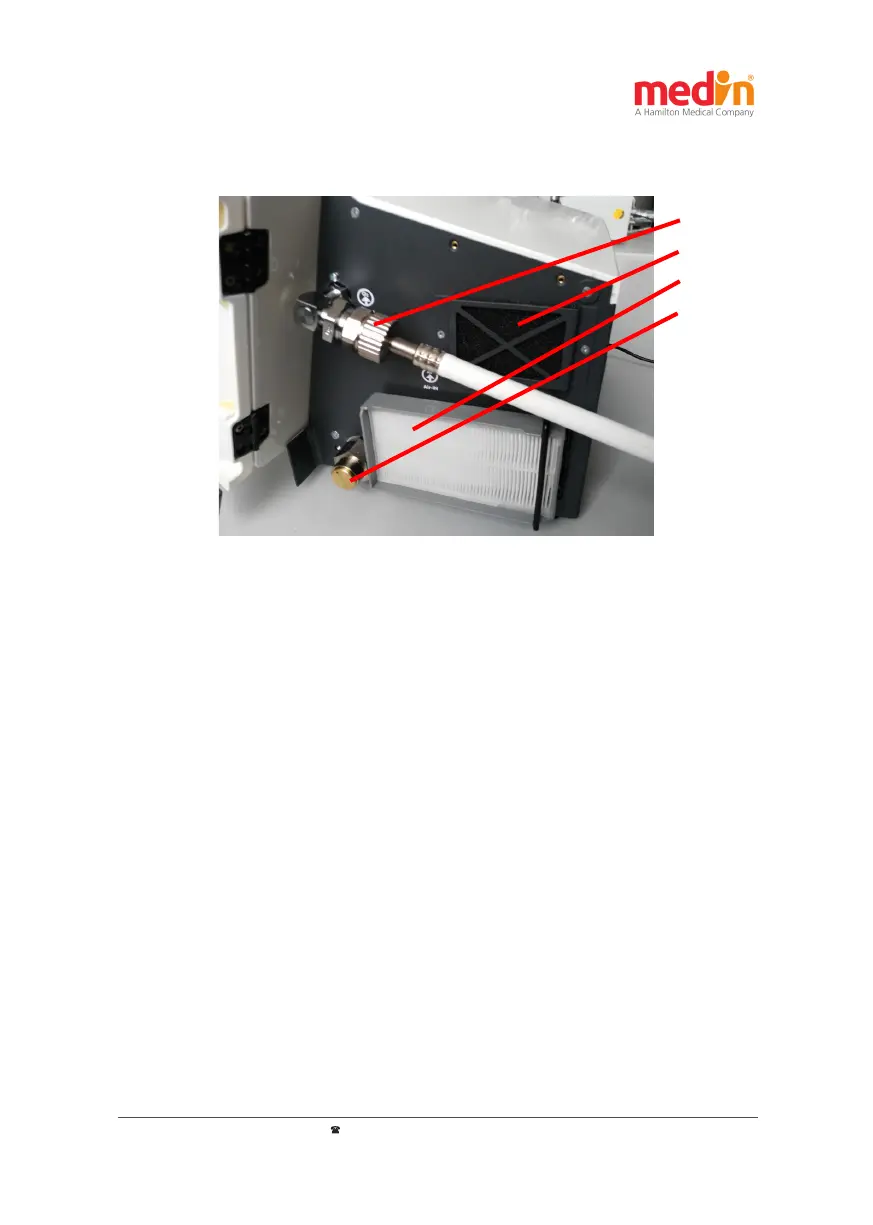 Figure 4-1: Connecons of the medin-NC3®: a) Gas supply oxygen; b) Fan intake