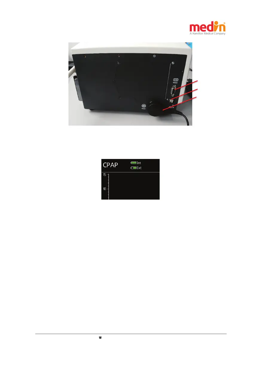 When the medin-NC3® is running on ba ery power, an alarm is sounded when the internal ba ery is low. It must