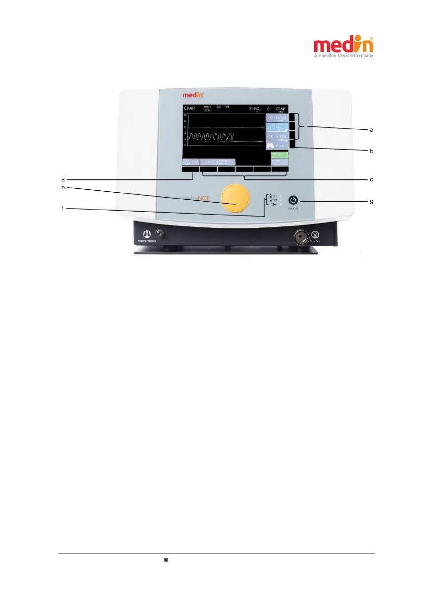 Figure 5-1: Operang unit of the medin-NC3®: a) Buons for seng the basic CPAP parameters;