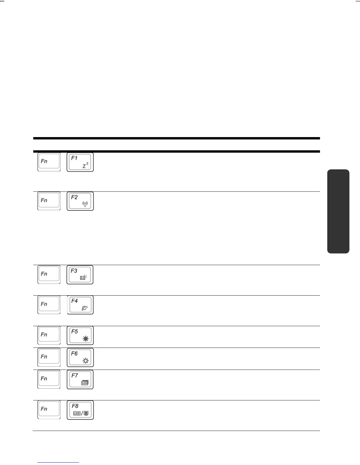 Switches the backlight off to save power. Pressing Fn+F7 one