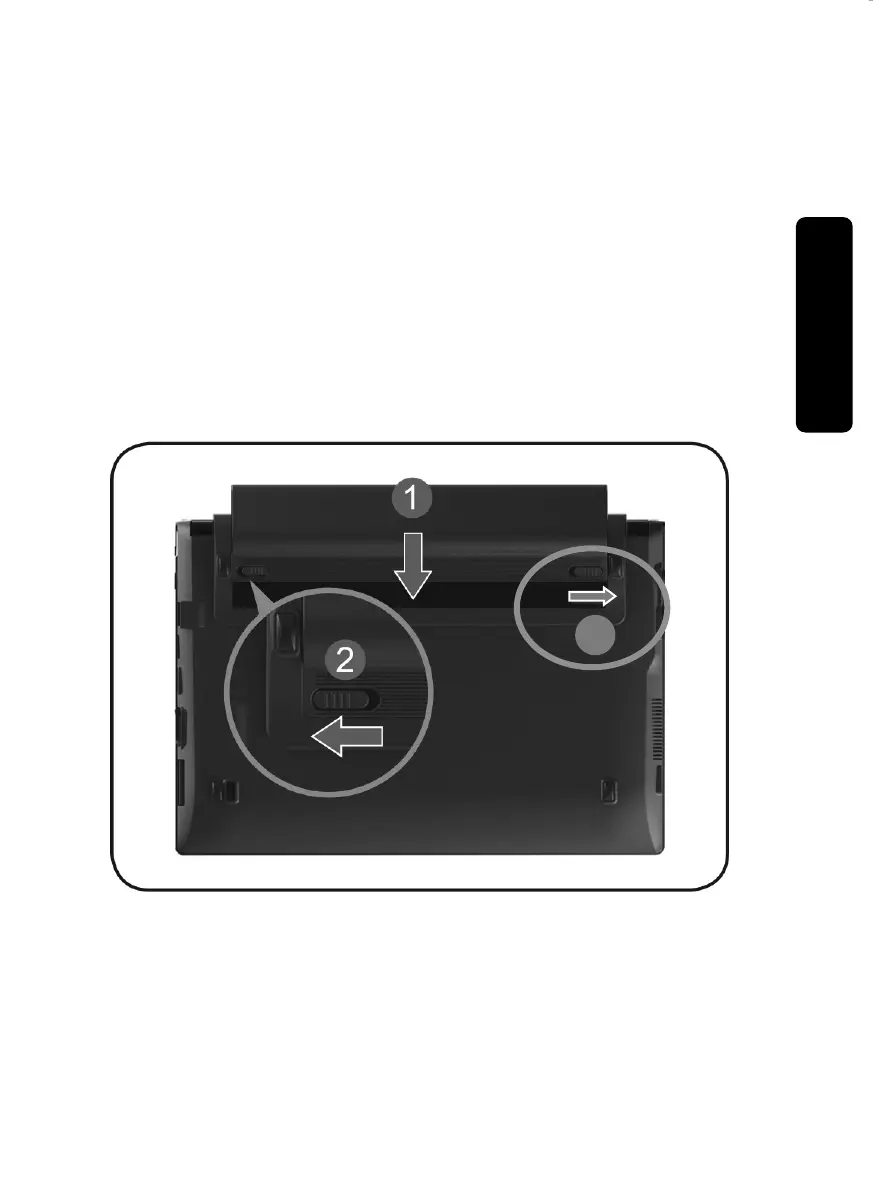 Insert the battery before bringing the netbook into operation by sliding the battery