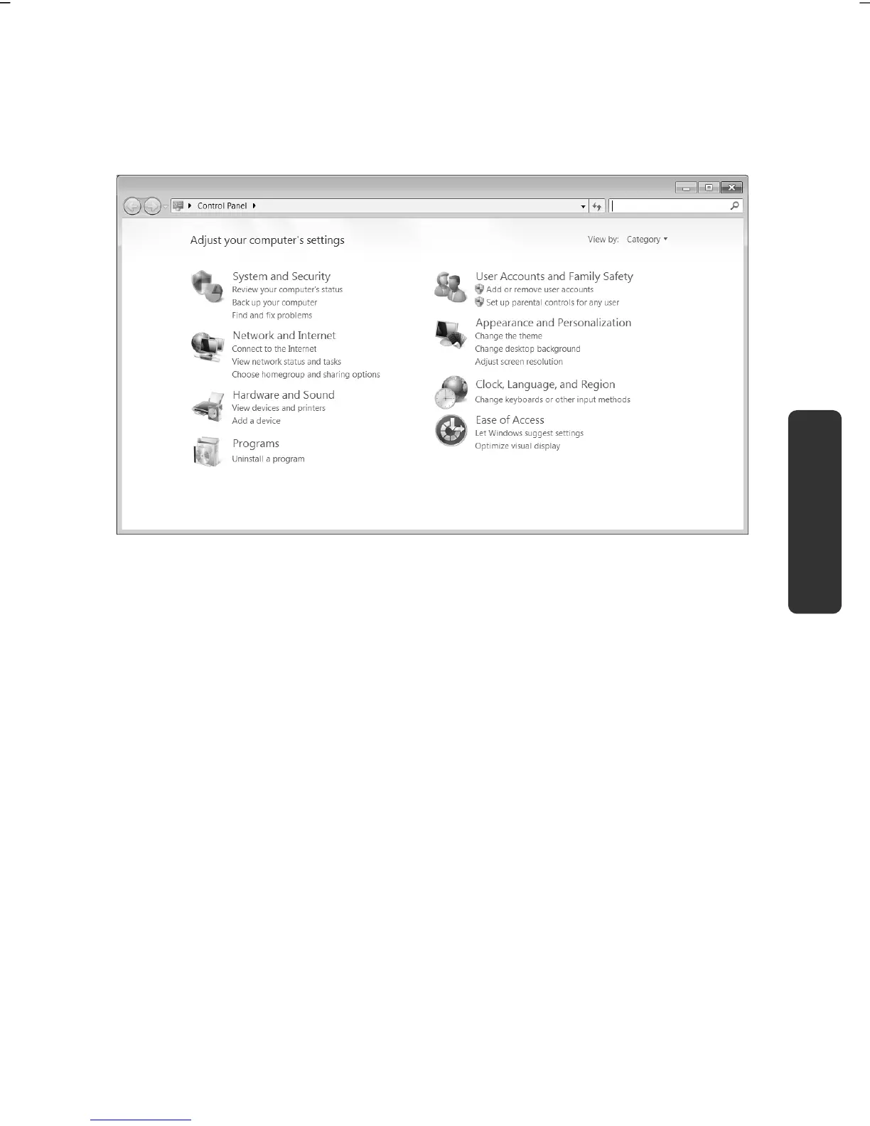 of the Control Panel are displayed by category.