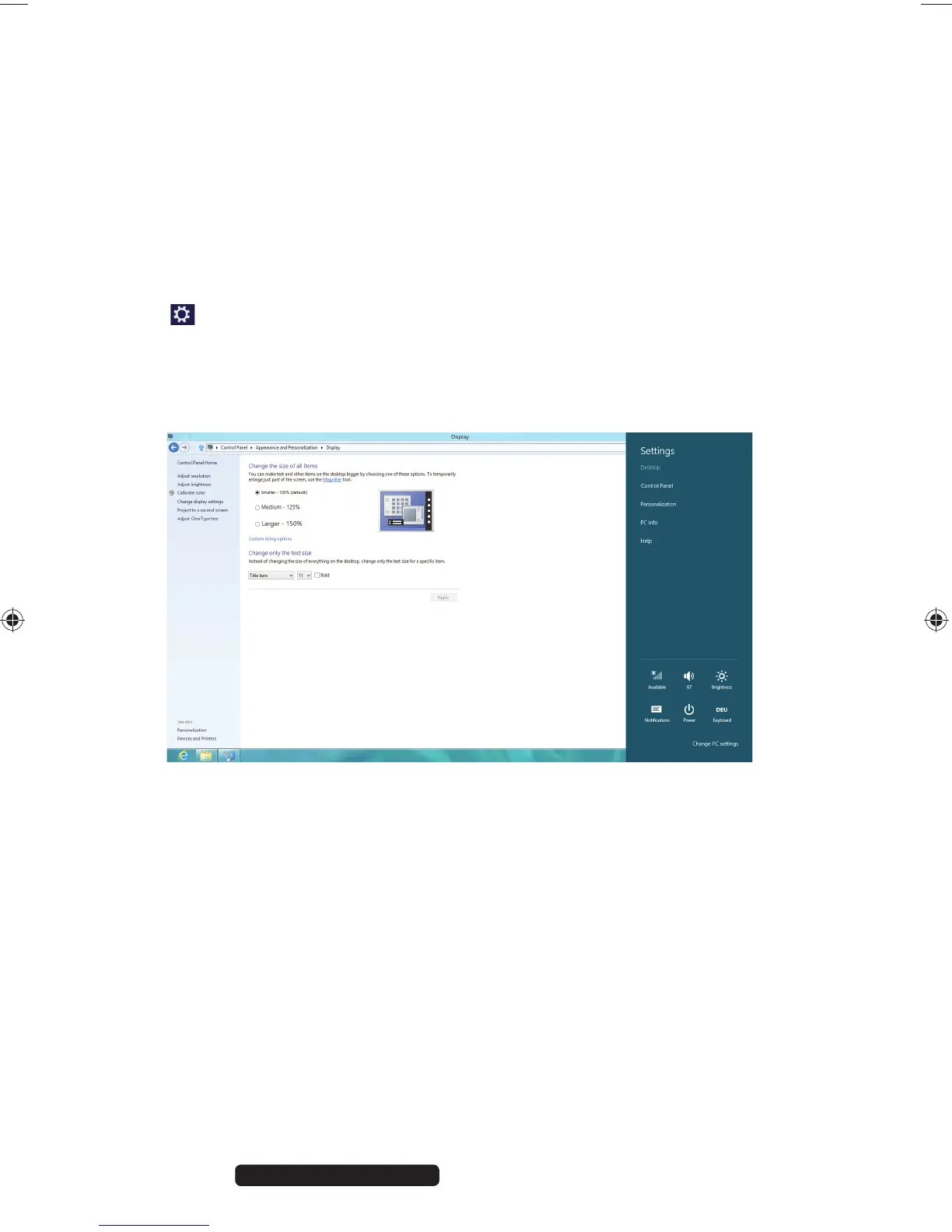 • Via Settings, Personalisation, Display by double clicking with the left mouse