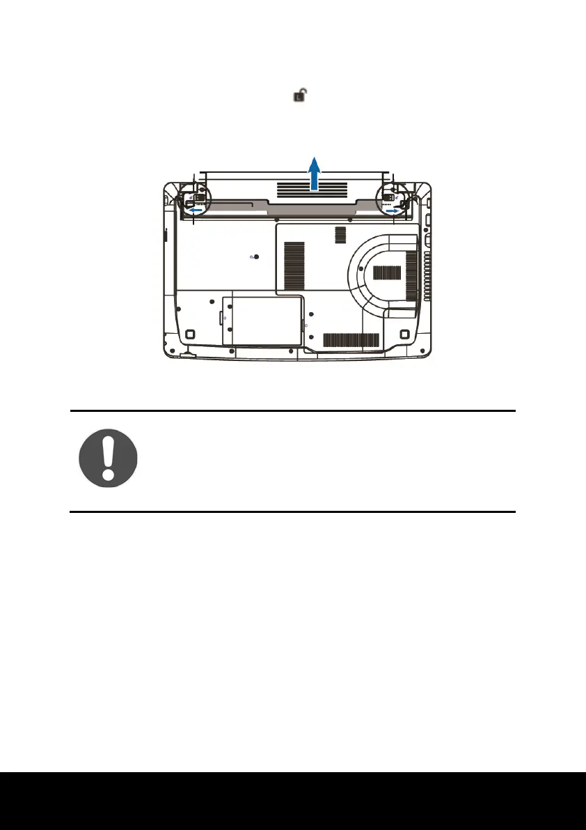 ► Push the safety locks to the position in order to remove the battery pack, then