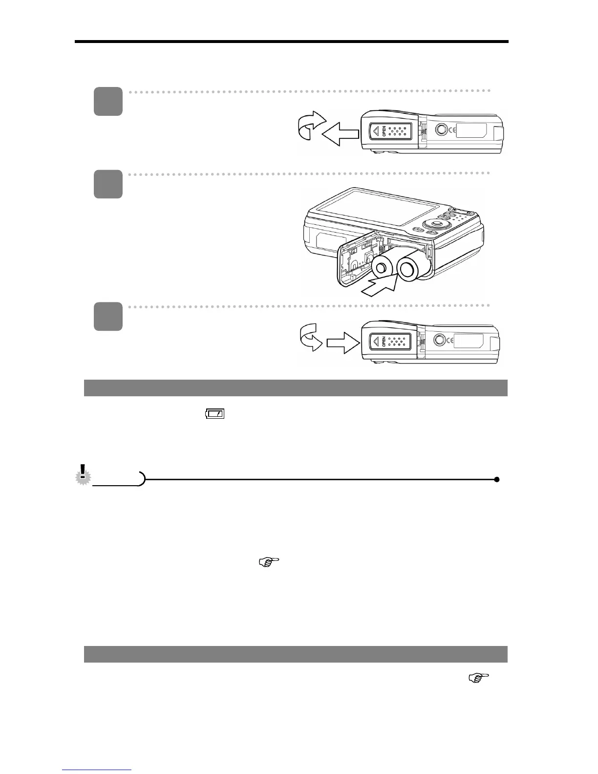 y Be sure to turn off the camera power before insert or remove batteries.