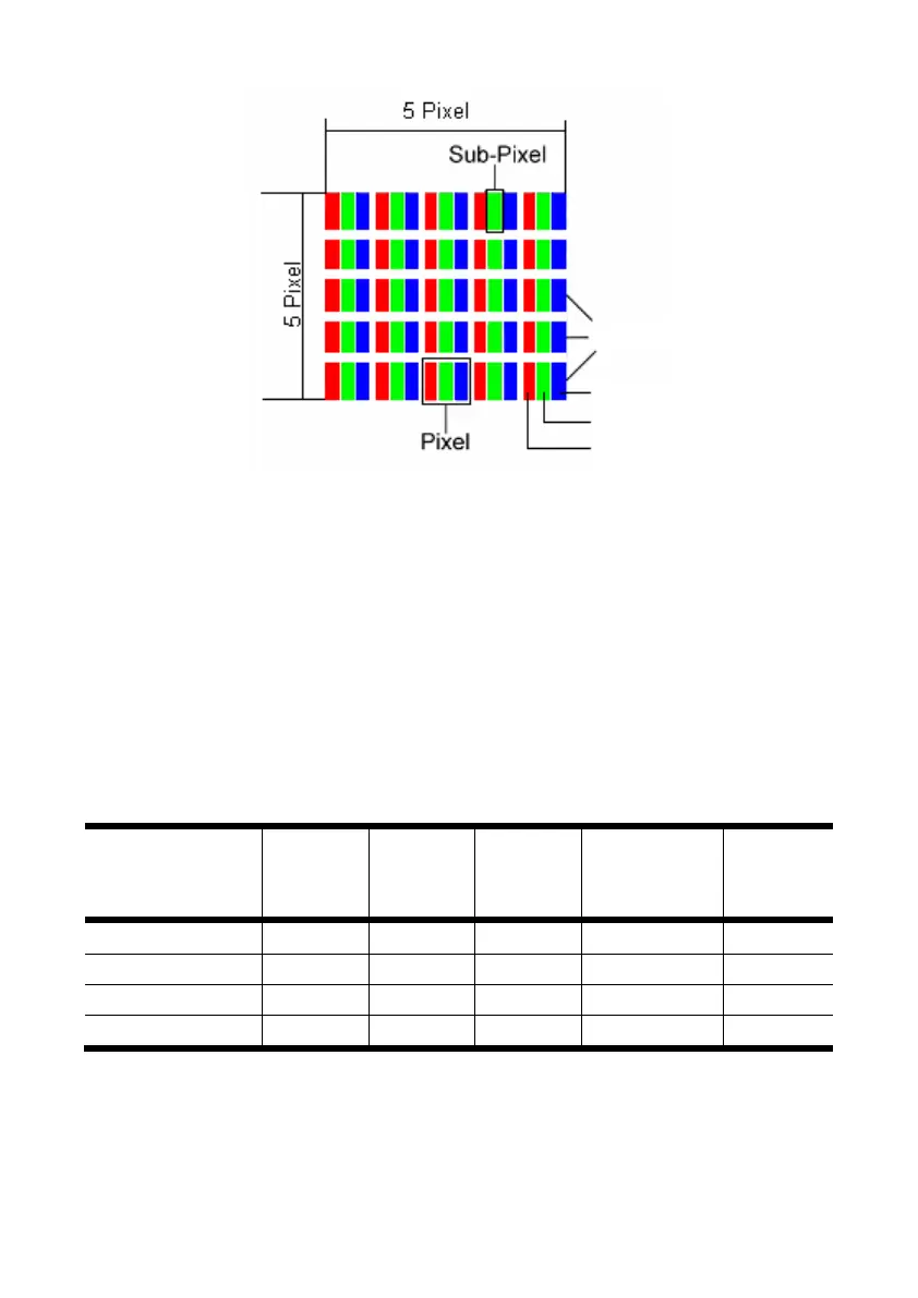 5 x 5 pixels. Un Cluster es un campo de 5 x 5 pixels (15 x 5 Sub-pixels).