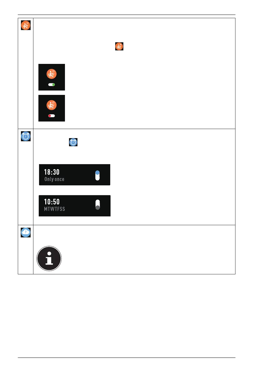 V aplikaciji MEDION® Fitness lahko programirate enega ali več alarmov.