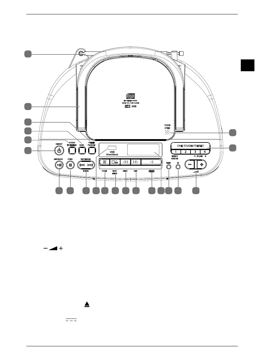 2) ONE TOUCH PRESET 14: selección directa de emisoras de radio memori-
