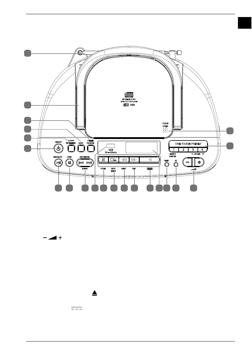 2) ONE TOUCH PRESET 14 – Direktwahl gespeicherter Radiosender
