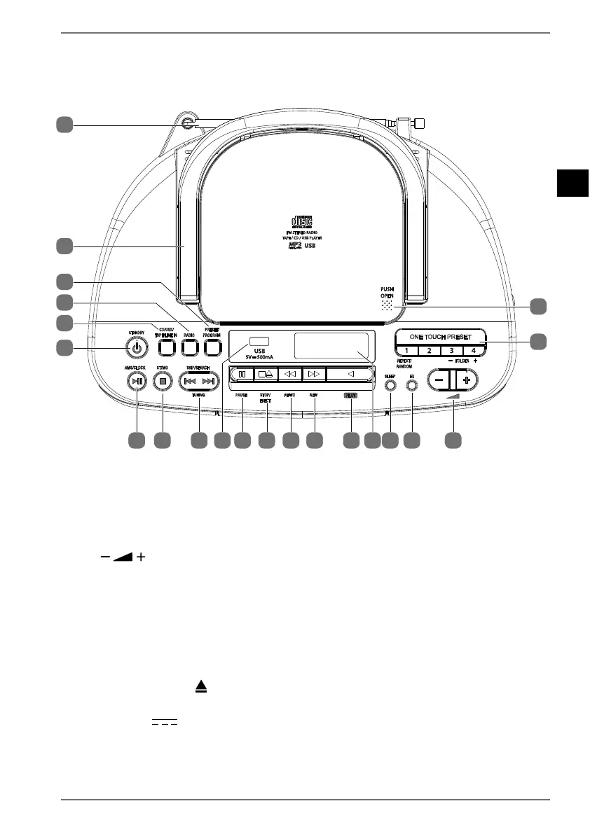 2) ONE TOUCH PRESET 14 – Selezione diretta stazioni radio memorizzate 1-4