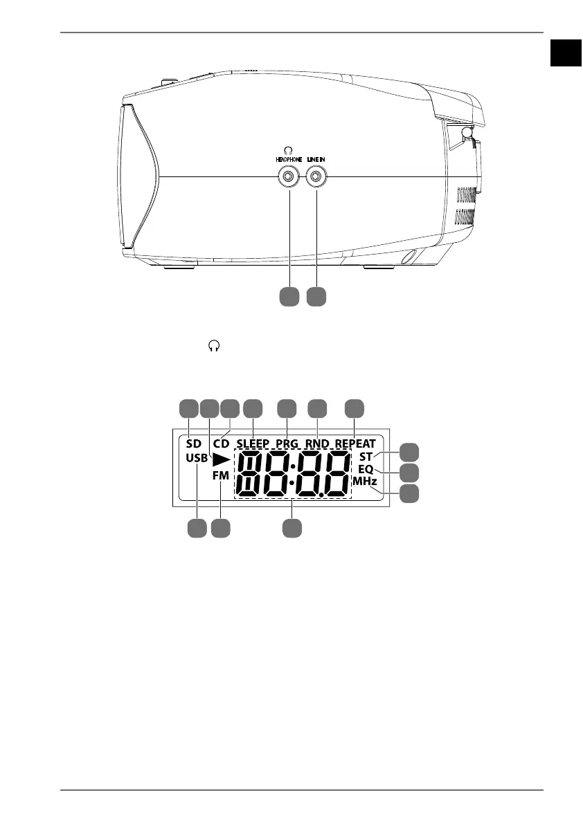 29) HEADPHONE – Anschlussbuchse für Ohrhörer