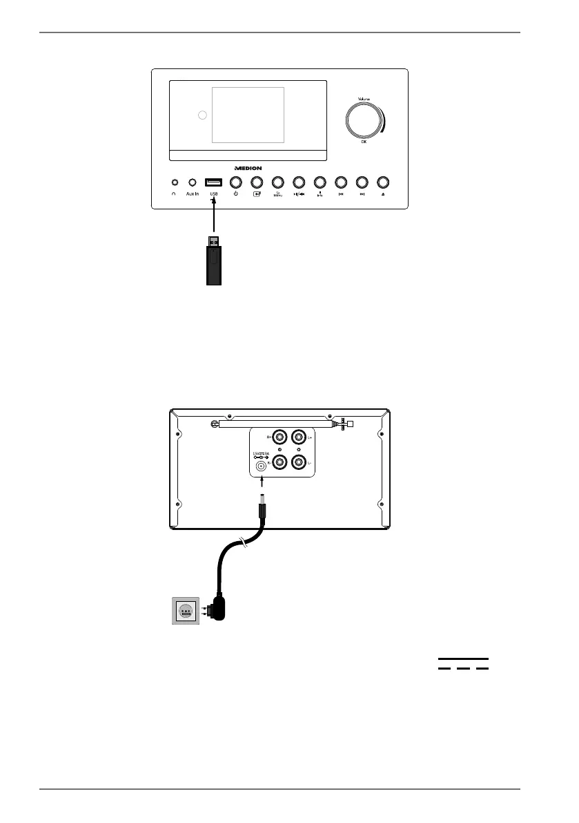You can connect USB sticks to the USB port on the front of the device. This enables