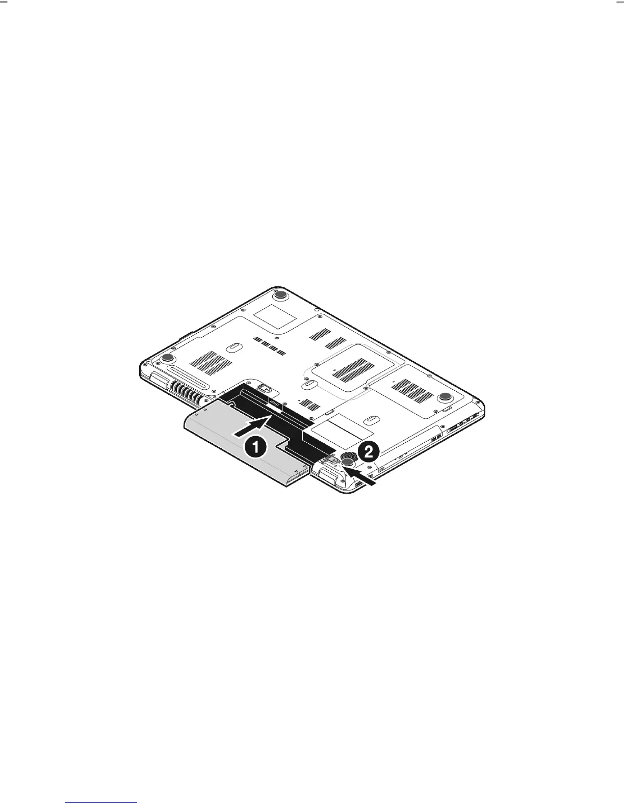 Insert the battery before bringing the notebook into operation by sliding the battery
