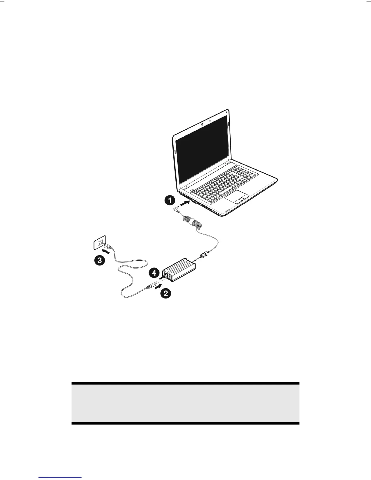 from the outlet if it is not connected to the notebook or set the adapter to OFF (0).