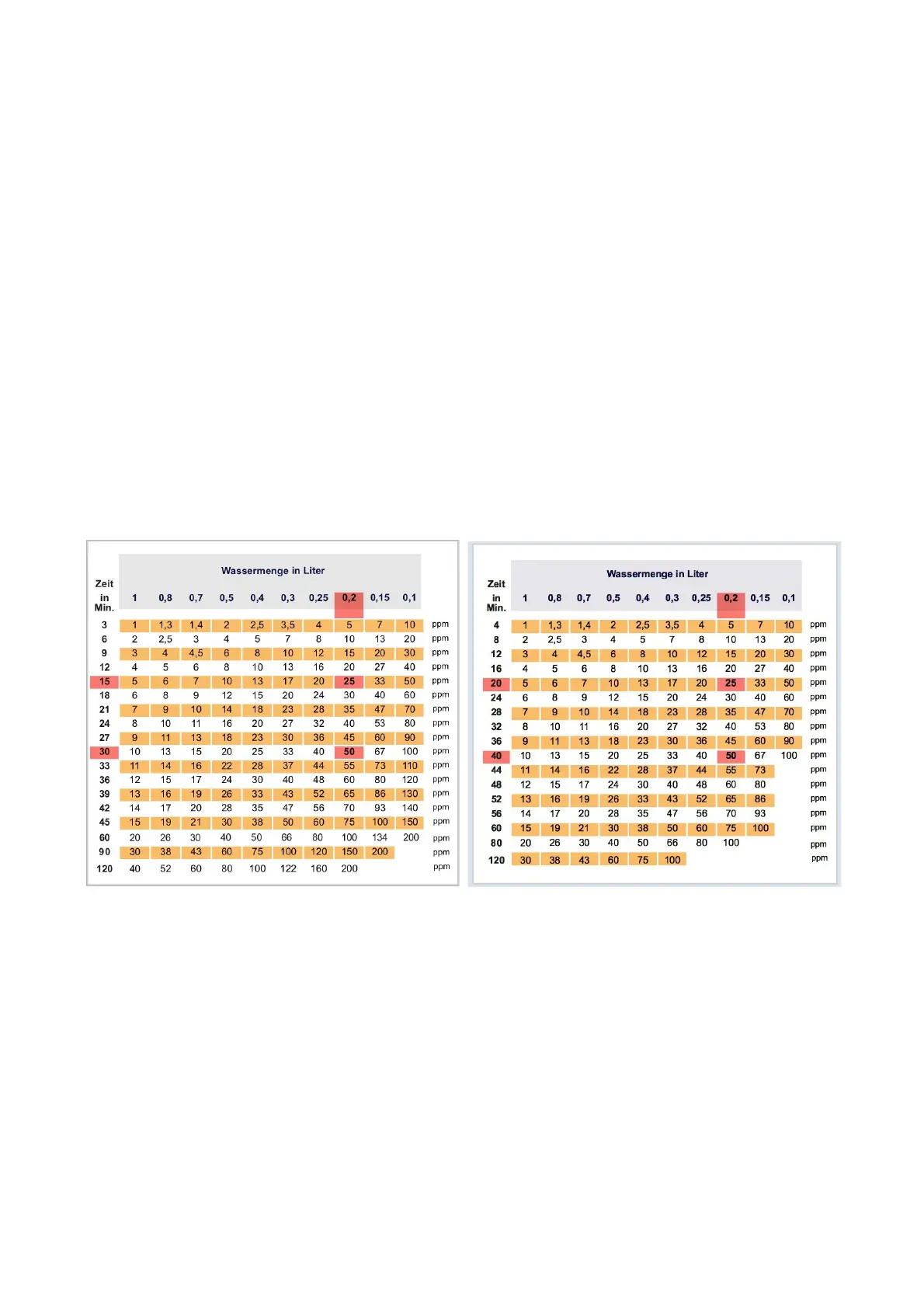line below the desired ppm value, and read on the left side, on the same level, the production time.
