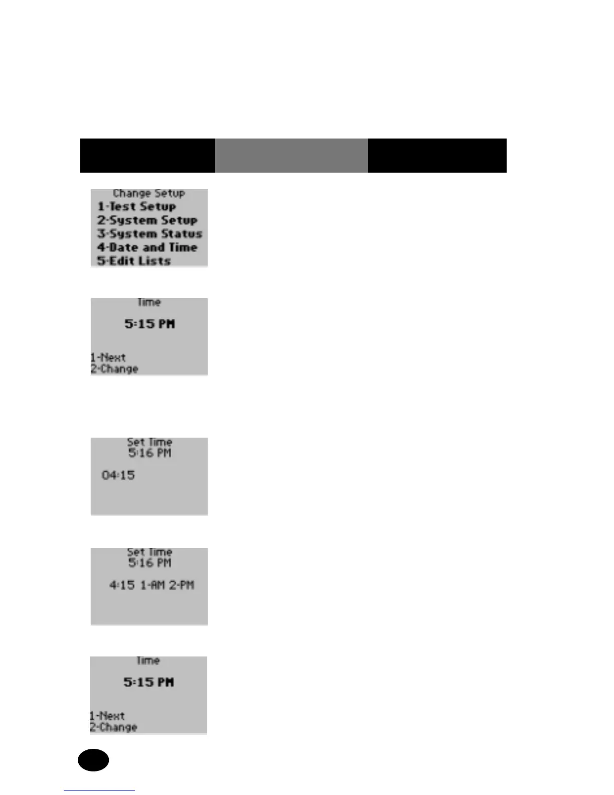 Review/Change Setup for Date and Time:
