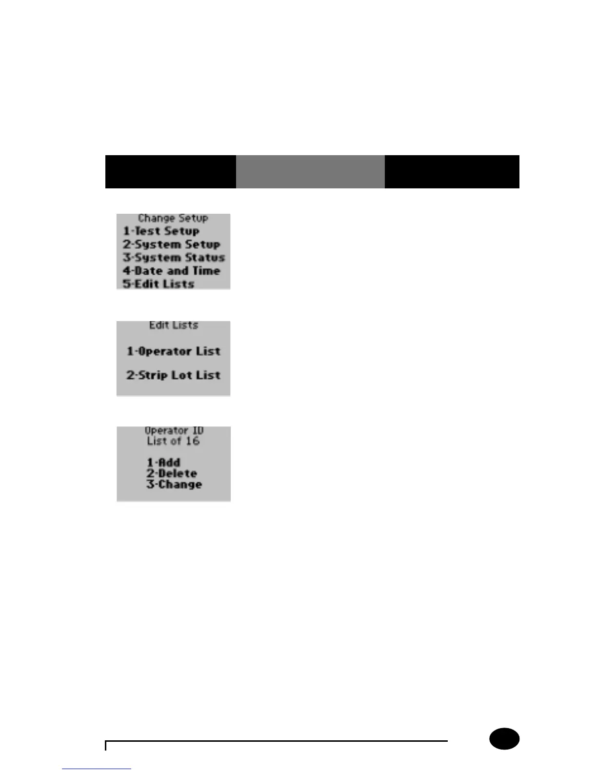 2. Press 1 – Operator List. The display shows the