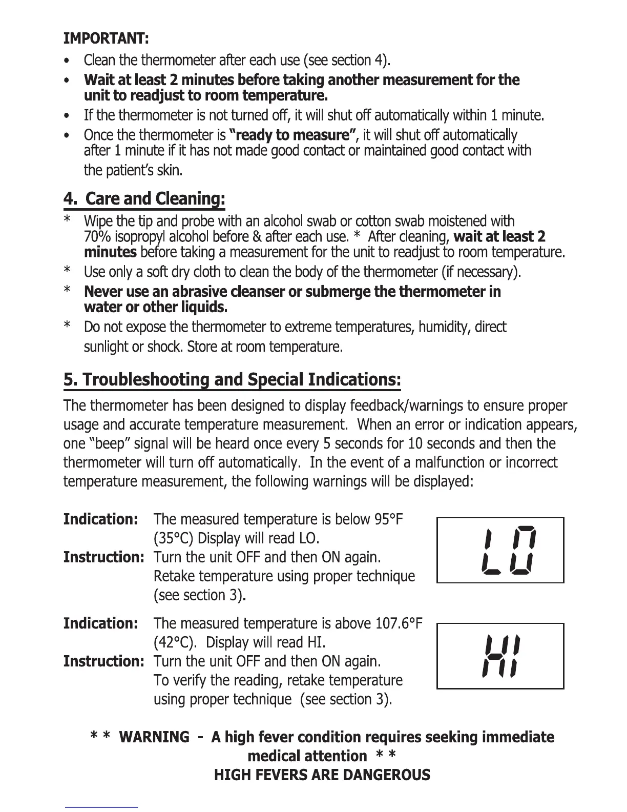 Medisim FHT1 - Care and Cleaning; Troubleshooting and Special Indications