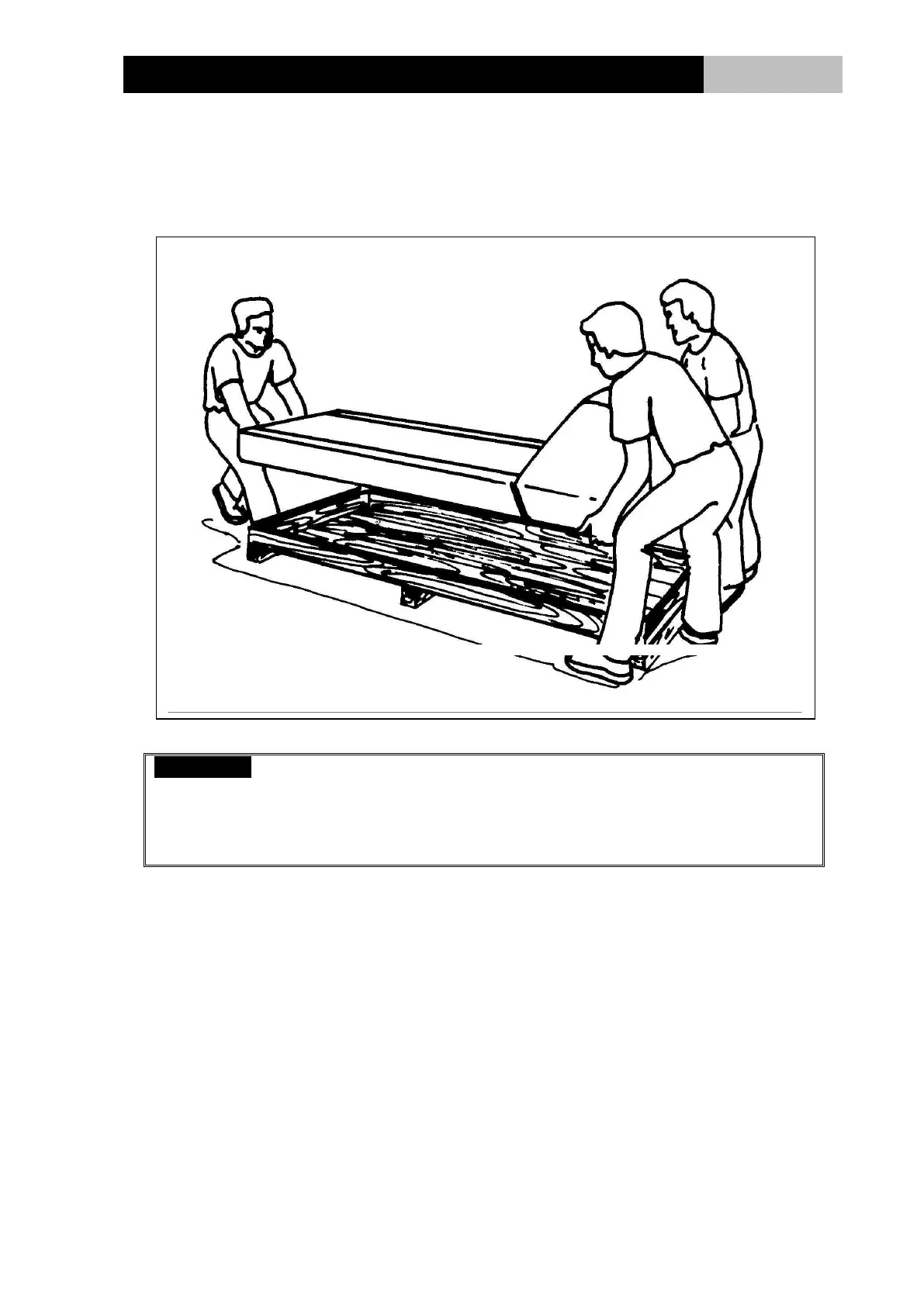 Three people are required to lift the treadmill from its wooden pallet. It is