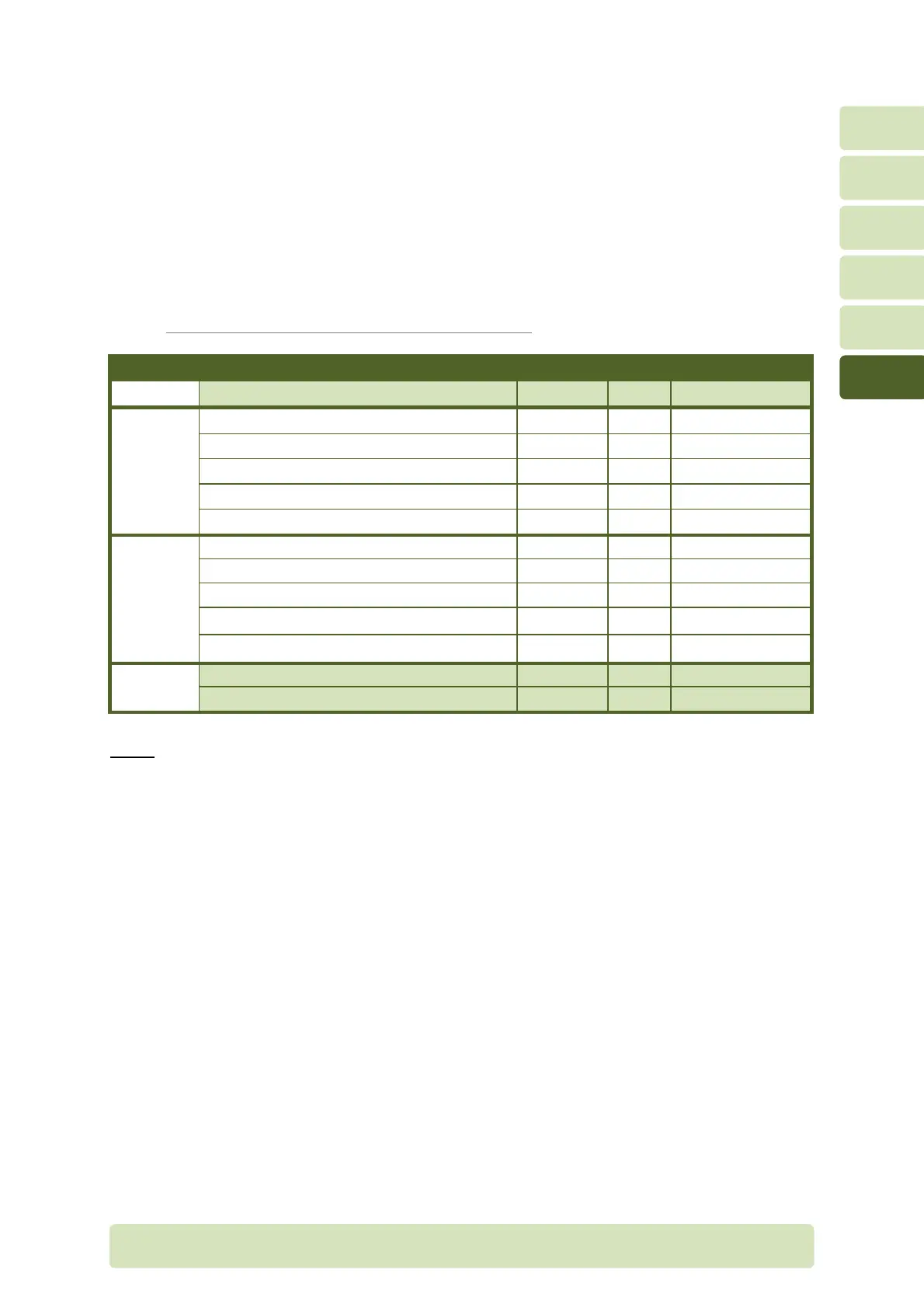 The table below shows the list of actions to be performed for a full preventive maintenance.