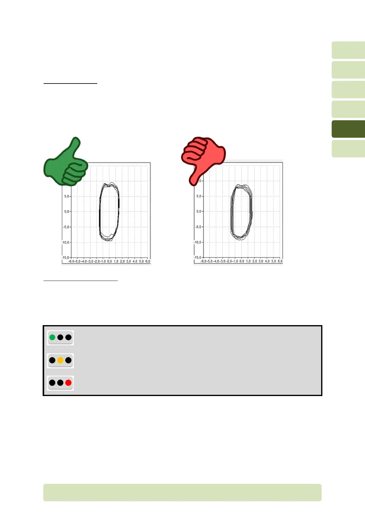 volume, one for exhaled volume. The traffic lights indicate the deviation of the calibration