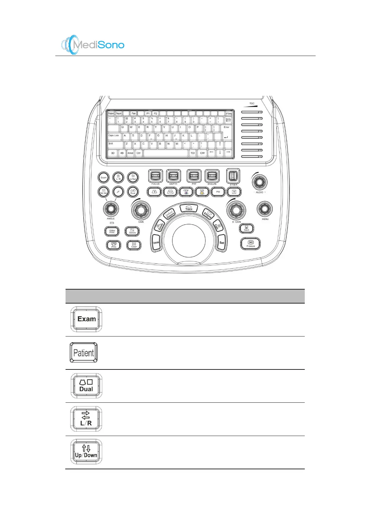 The keyboard layout is shown in Figure 3-4. It consists of hard keys, knobs, a trackball, flip