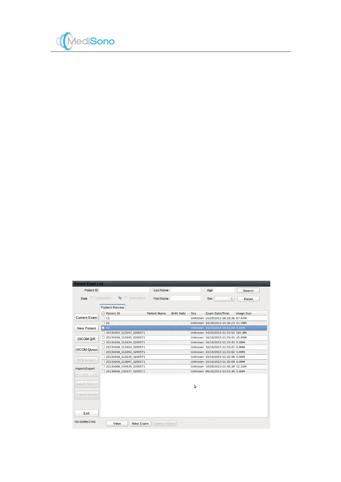 Patient inform ation can be viewed or queried on the DICOM Q/R screen. Patient information