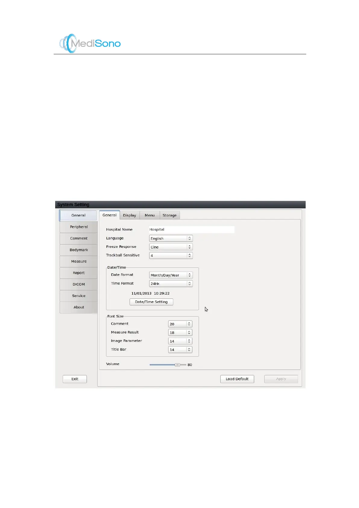 The general setting and configurations for peripherals, comments , bodymark, measurem ents,