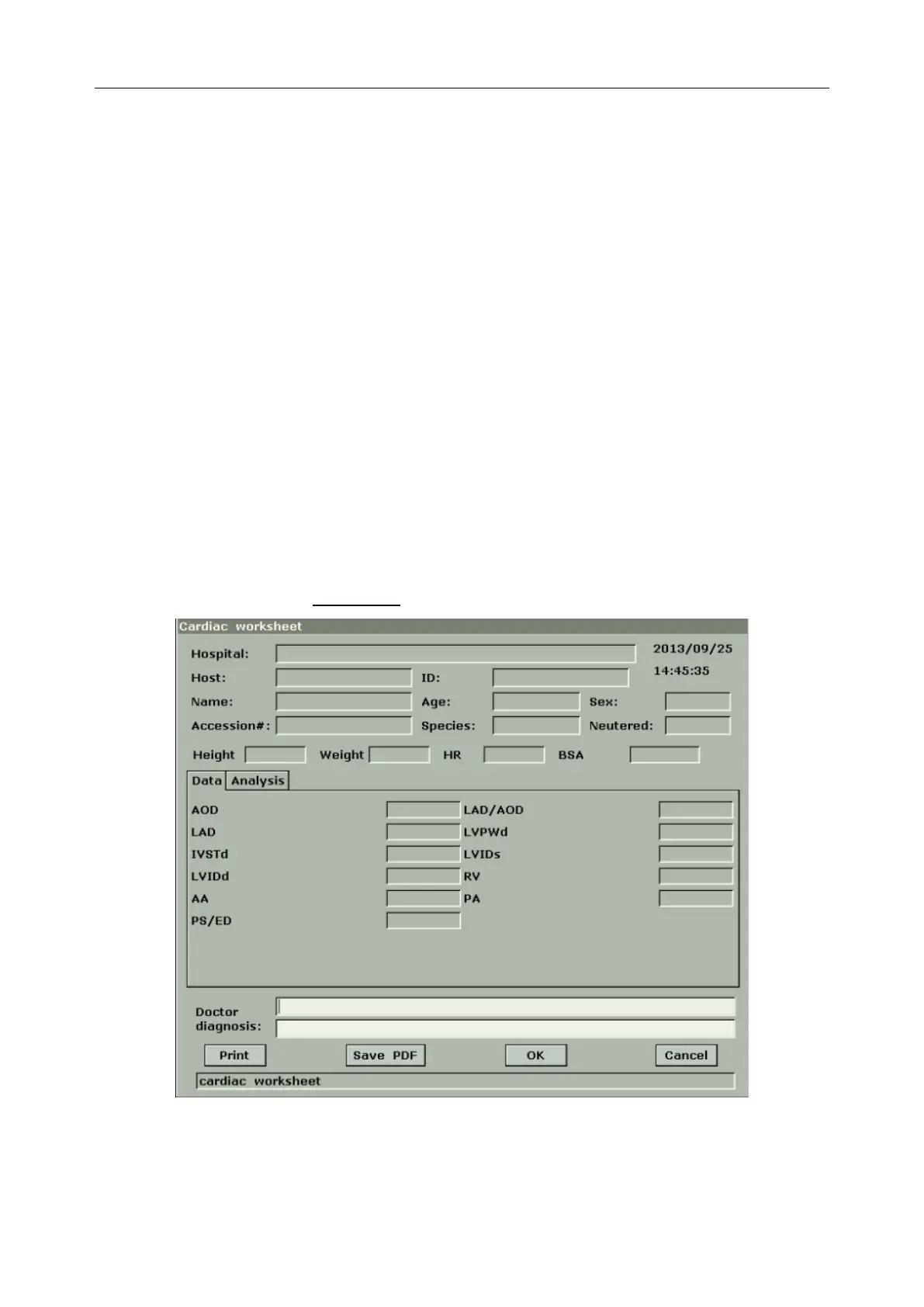 2. In M/B mode, after application measurements press Car Worksheet to open Cardiac