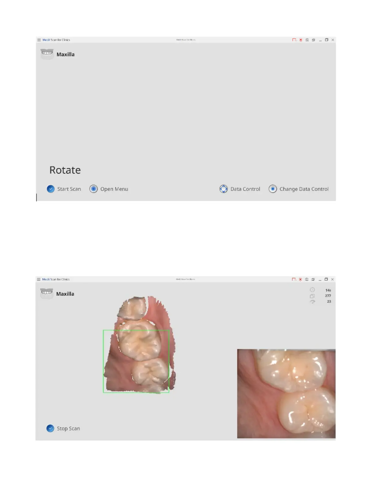 While scanning, UIs such as "Live View" and "Scan Information" are expanded for the