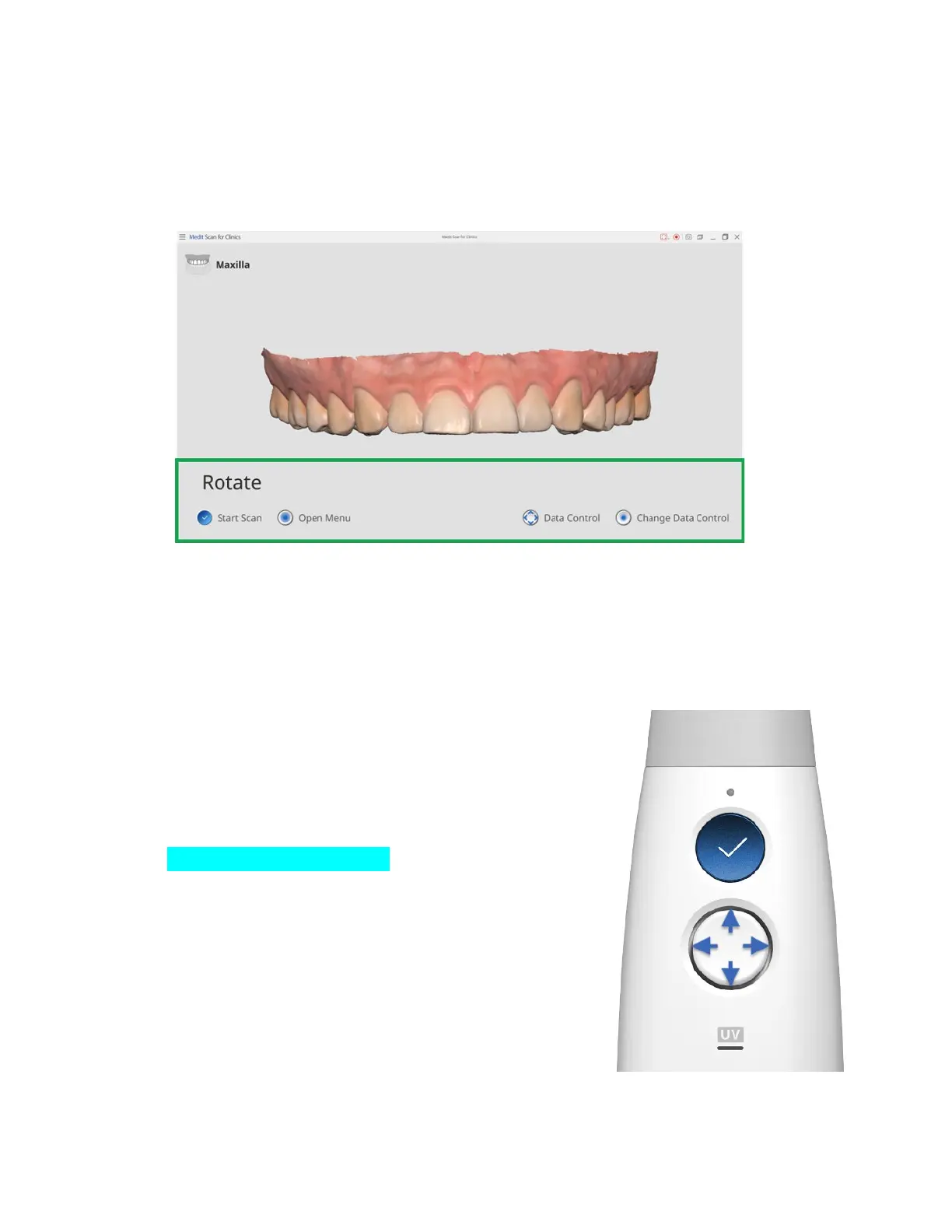 ➤ After scanning, press the Control button to check the acquired scan data.