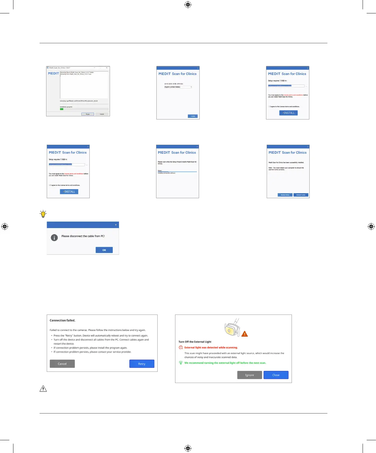 Medit i900 - Brukerveiledning for Medit Scan for Clinics; Feilmeldinger; Installasjonsveiledning for Medit Scan Til Klinikker