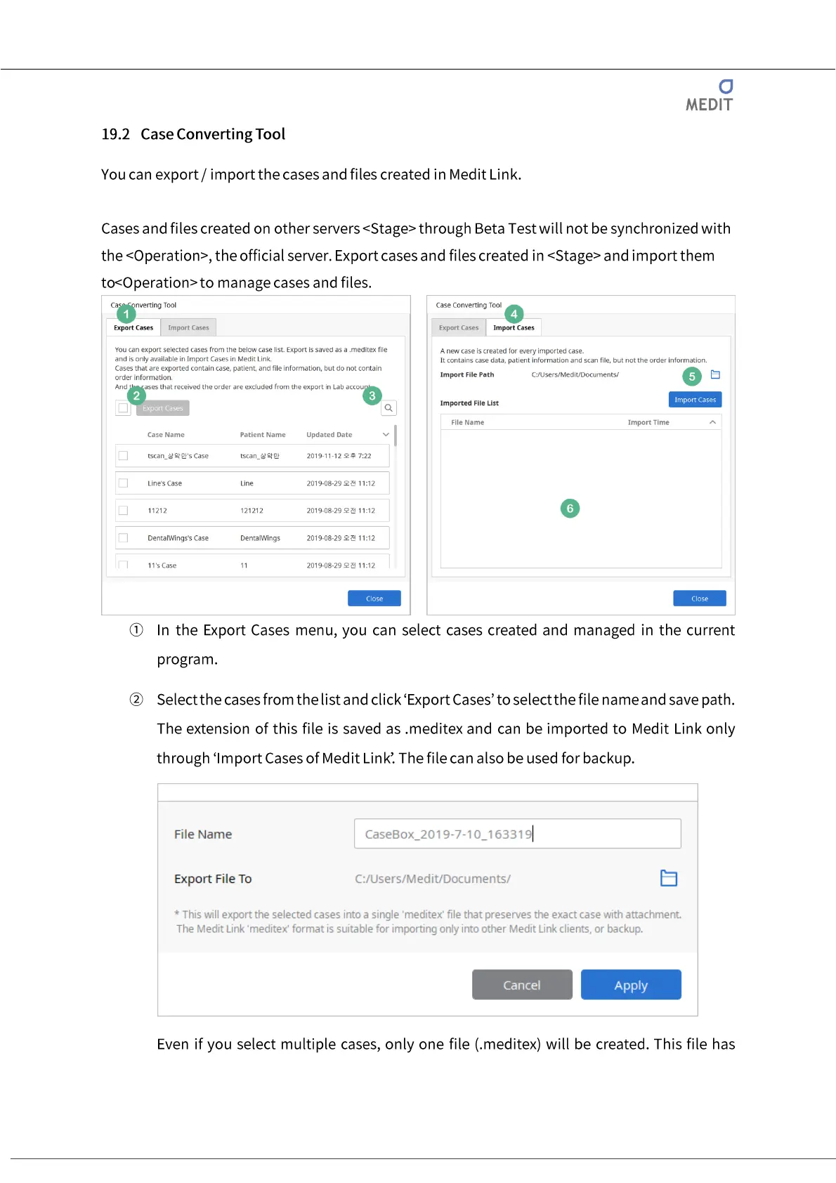 Medit Link - 19.2 Case Converting Tool; 19.3 Set Linked Program