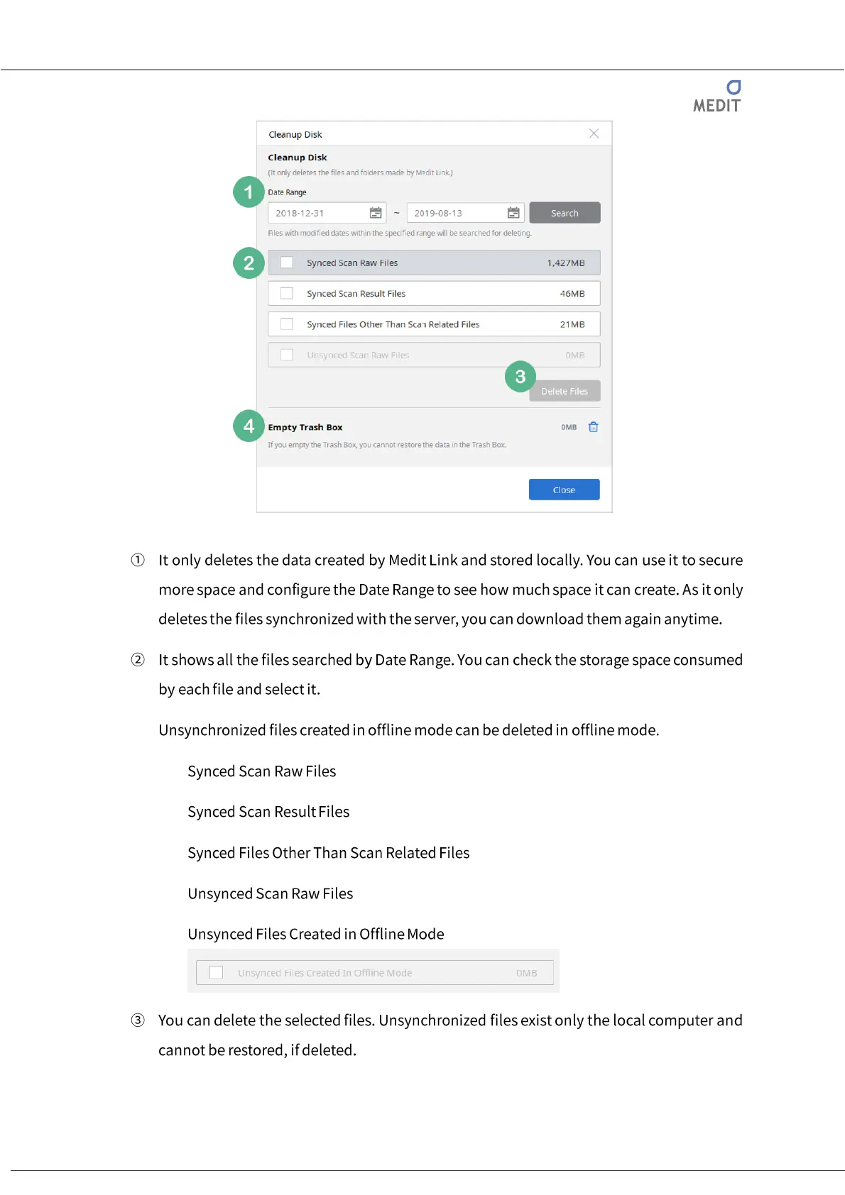 Medit Link - 19.5 Cleanup Disk; 19.6 Language Settings