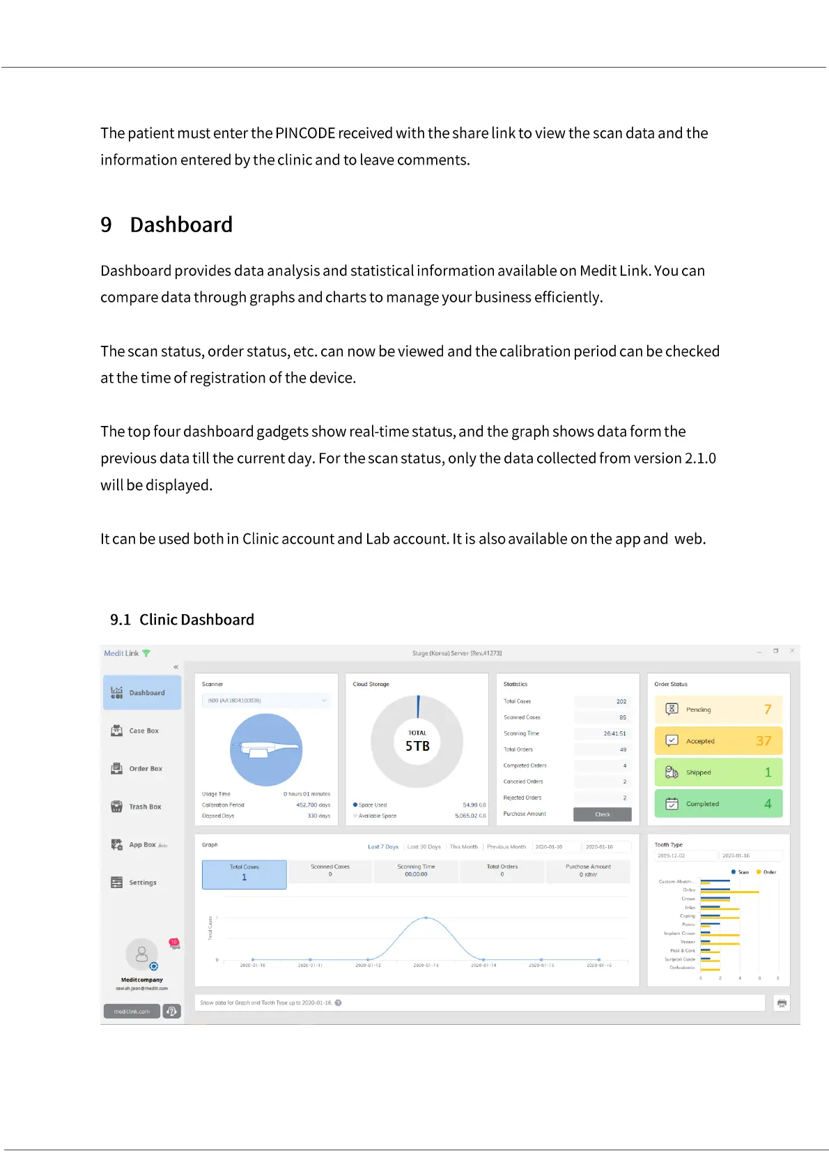 Medit Link - 9 Dashboard; 9.1 Clinic Dashboard