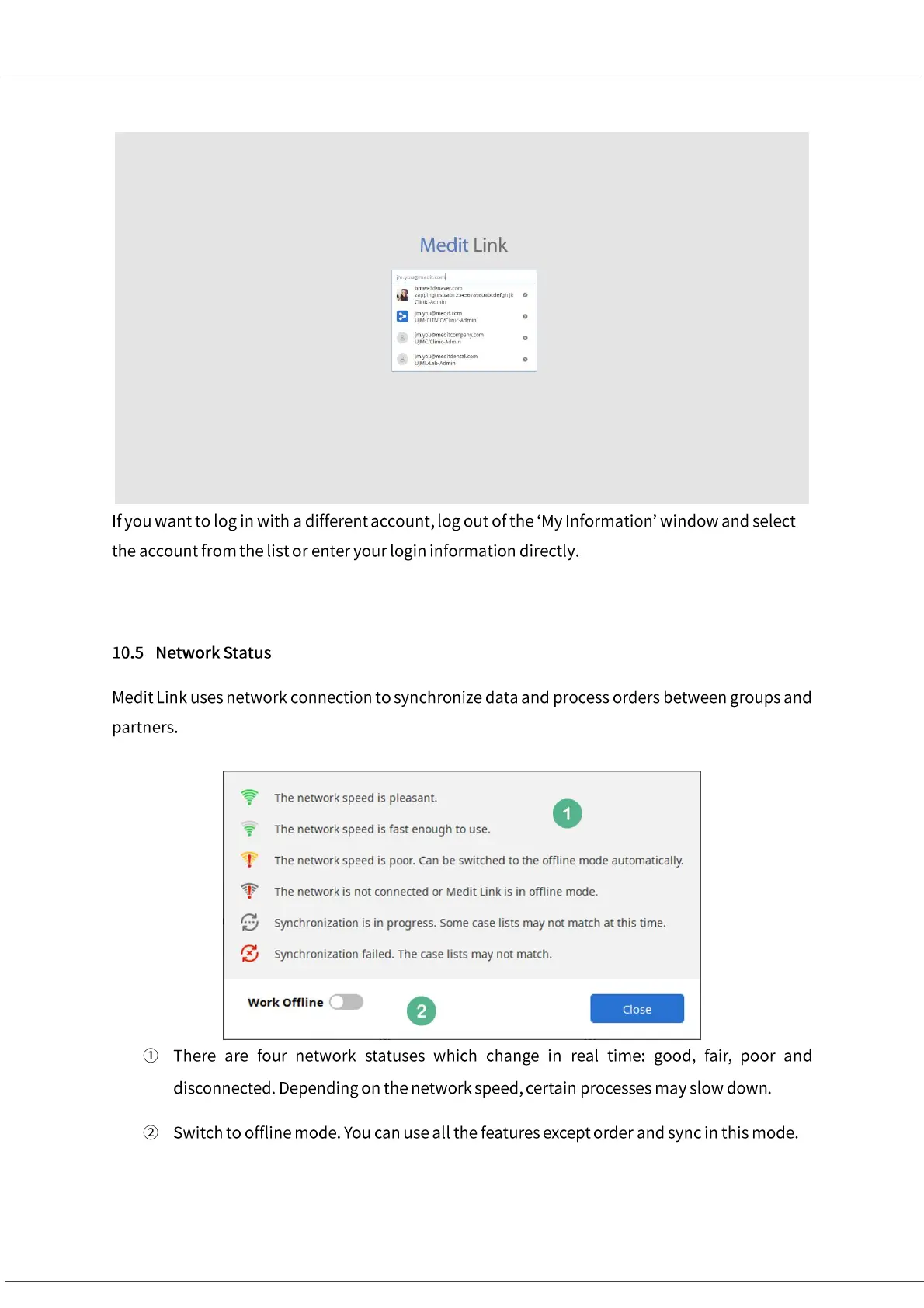 Medit Link - 10.5 Network Status; 10.6 Notification