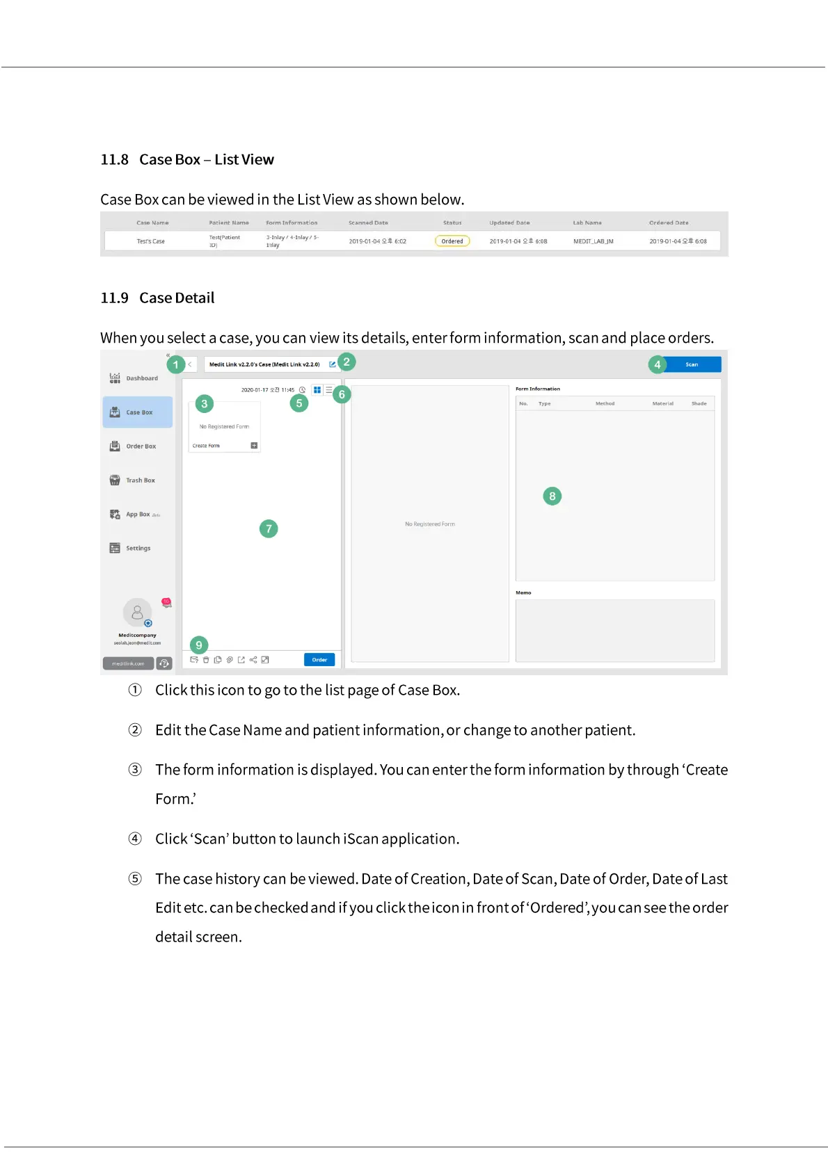 Medit Link - 11.8 Case Box - List View; 11.9 Case Detail
