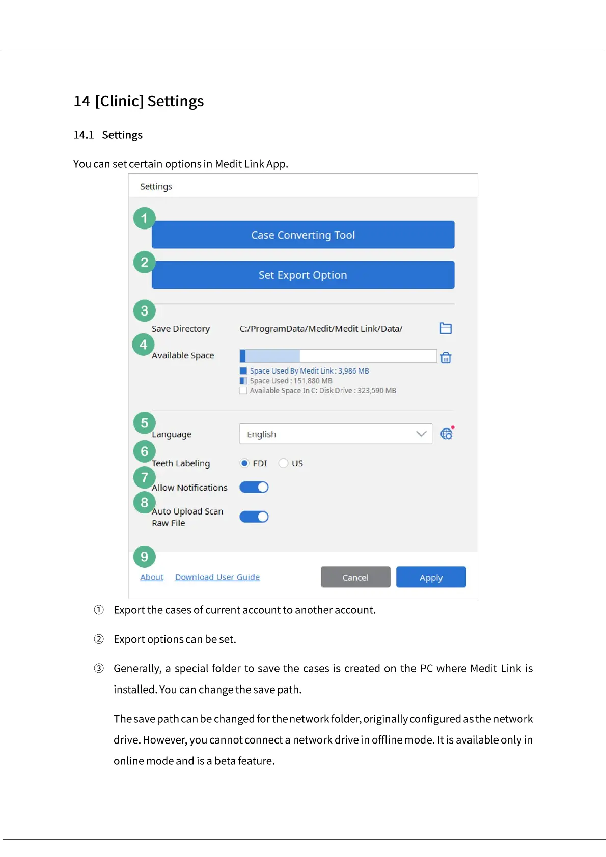Medit Link - 14 [Clinic] Settings; 14.1 Settings