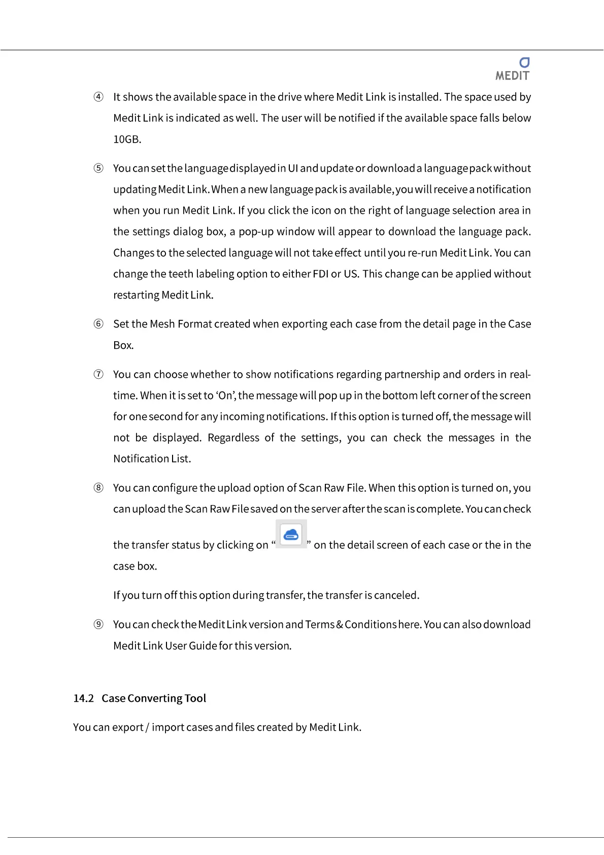 Medit Link - 14.2 Case Converting Tool; 14.3 Set Export Option