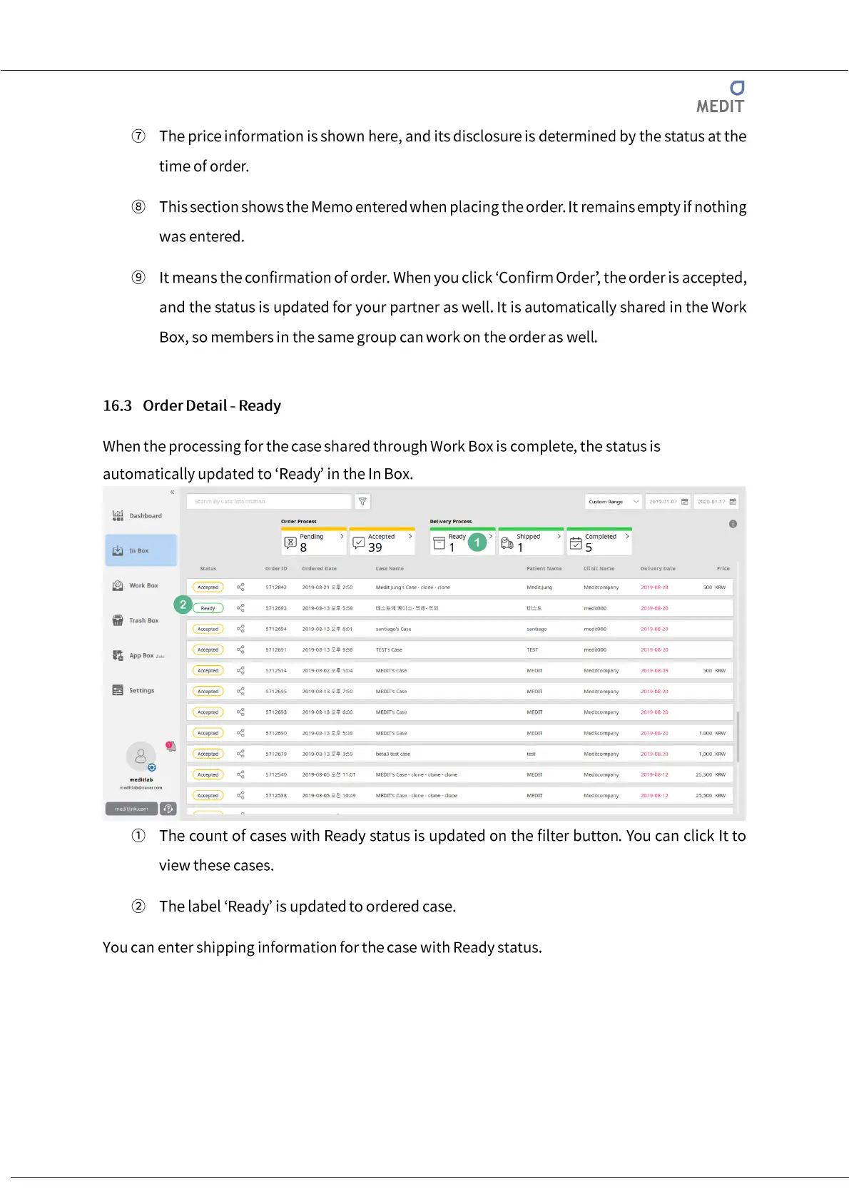 Medit Link - 16.3 Order Detail - Ready; 16.4 Order Detail - Shipped