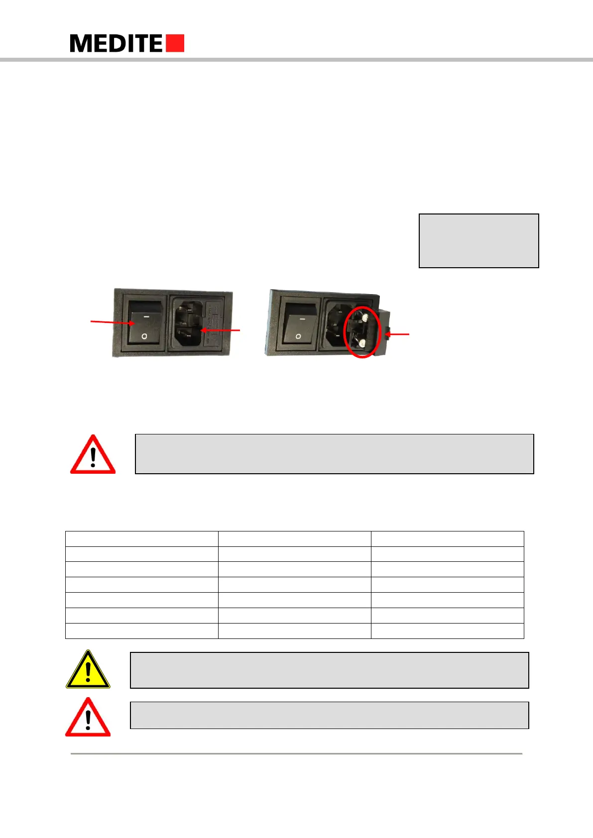 Change the fuse (only use original Medite® material)