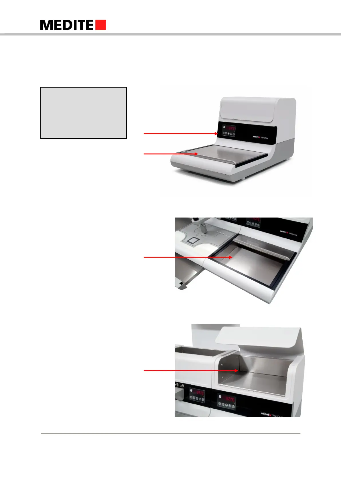 Medite TES Valida - 3 Components of the TES Valida Thermal Unit; Front and Work Area