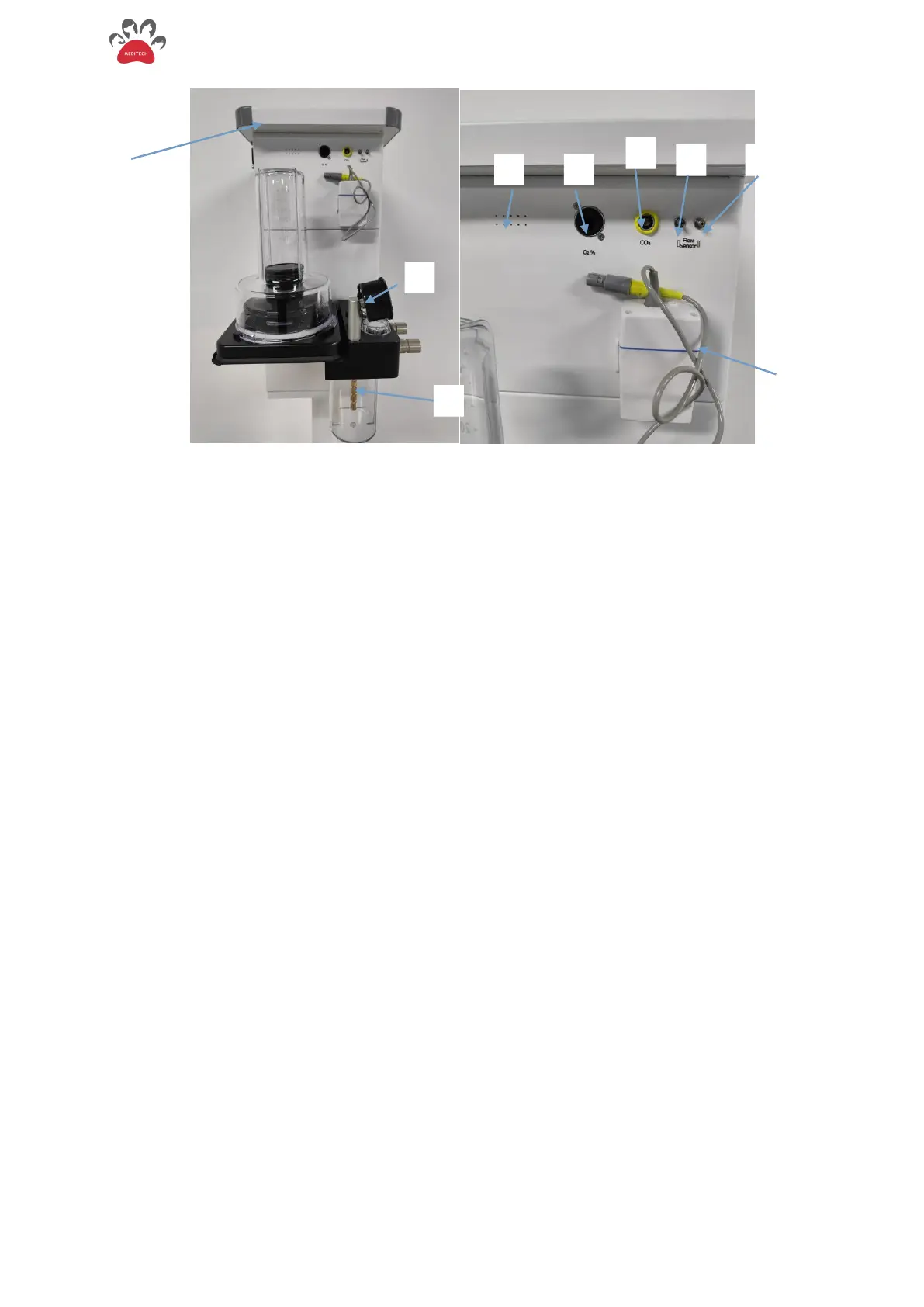 1. Top Cover 2.Pressure Gauge 3. Soda Lime Canister 4. Speaker Port